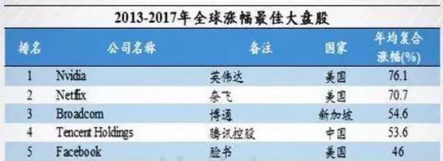 由于技术的独占性,人人都想用英伟达的GPU,直接也让其出货量涨到了惊人的程度,连带成为了2013-2017年全世界表现最好的大盘股,连谷歌脸书都要避其锋芒!