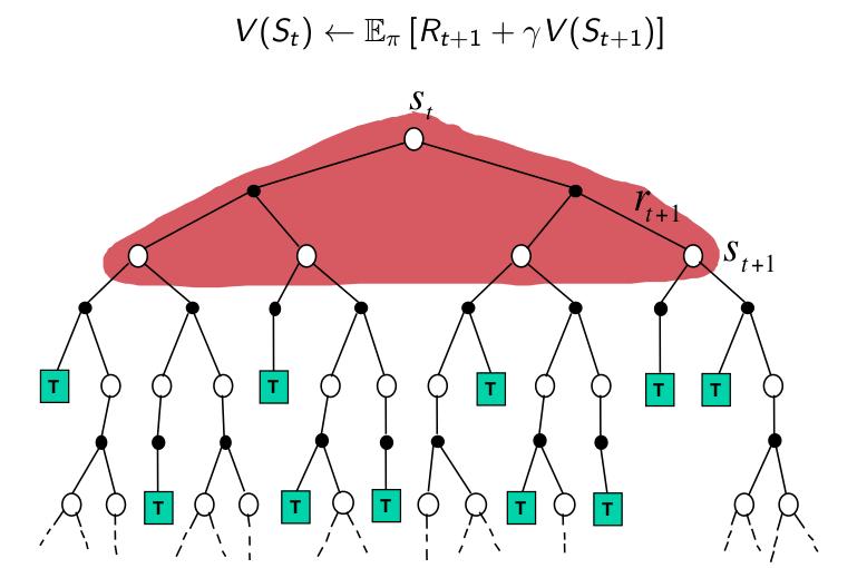 如下图所示,动态规划会”遍历”所有的子树,而蒙特卡罗方法只采样一条路径。
