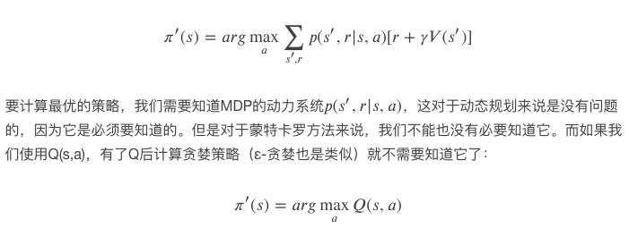 动态规划需要模型 p(s’,r|s,a);而蒙特卡罗方法不需要,它只需要能获得采样的 Episode 就行。因此动态规划也称为基于模型的 (model based) 方法;而蒙特卡罗方法被称为无模型的 (model free) 方法。基于模型的方法需要知道环境的动力系统,有些问题我们很容易知道环境动力系统,但是还有很多问题我们无法直接获得。如果我们还想使用动态规划,我们就必须用一个模型来建模环境,这本身就是一个很复杂的问题。比如前面我们的21点游戏,想完全建模其动力系统是很困难的。