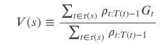为了估计 𝑣𝜋(𝑠) ,我们可以简单的用重要性比例加权平均回报: