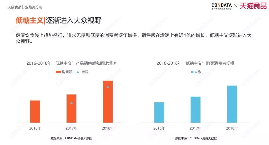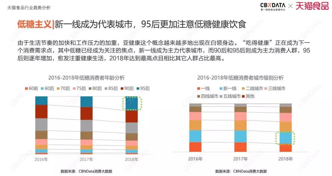 近日,天猫联合《第一财经商业数据中心》CBNData分别发布了两份报告,分别是《天猫食品行业趋势分析报告》和《2018国民健康跨境消费趋势报告》,报告CBNData消费大数据,统计了两大领域的一些最新消费趋势。