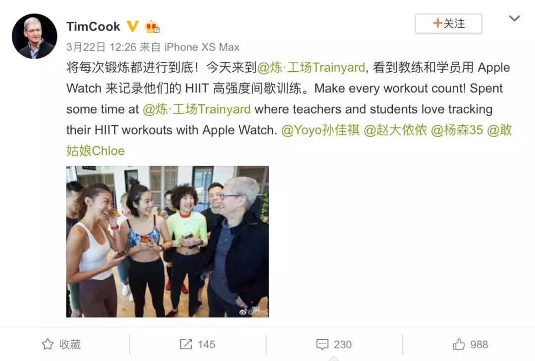 而2019年的这次造访,库克同样少不了去一趟健身房,这一次来去的是北京的新国贸饭店旗下的高端健身房「炼工场」。