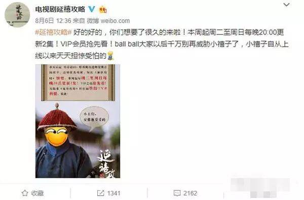 2018年,爱奇艺在播出全网爆款连续剧《延禧攻略》的时候,一开始的播出日程是每周四到周日更新,一周四天更新八集,而在这部剧爆红之后,网友开始了千呼万唤的催更,爱奇艺迫于压力和热度,临时调整增加更新,变成了每周二到周日更新,一周六天更新十二集。