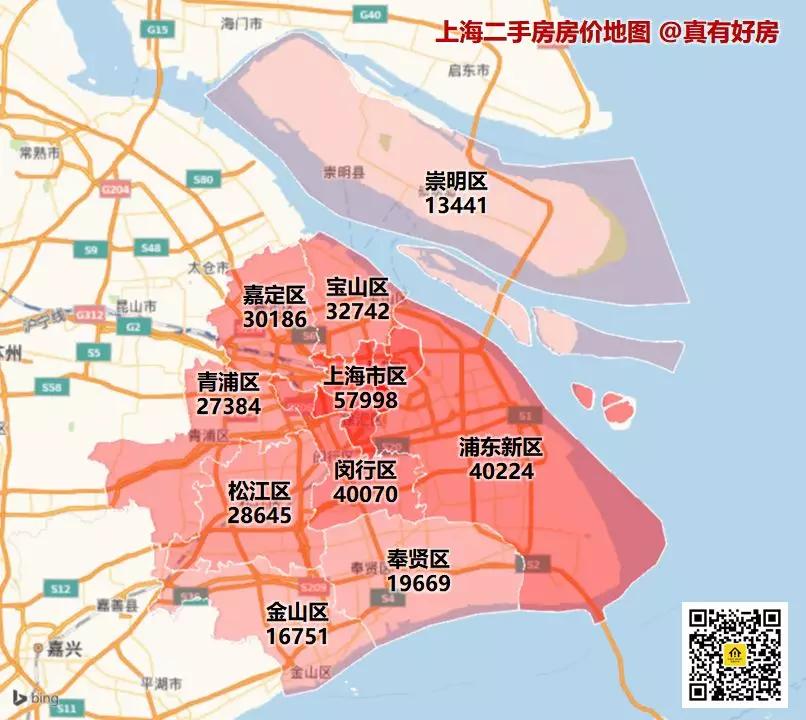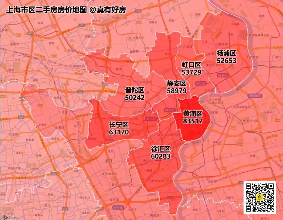 上海传统意义上的市区成交均价如何?看这张市区房价地图: