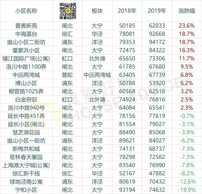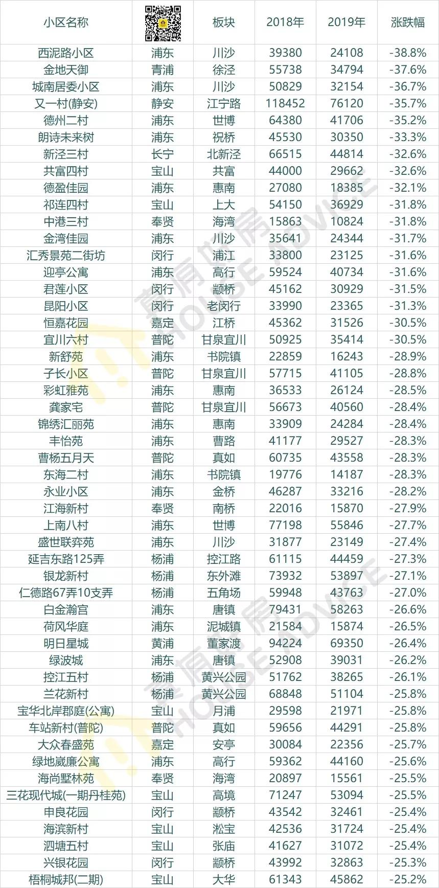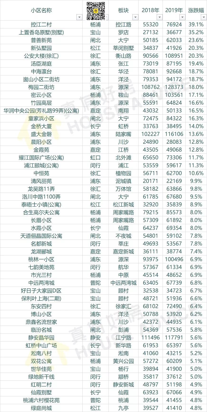 好了,很关键了,最后我们一起看下上海二手小区这一年来的涨跌幅TOP50,快来看看有没有你家的
