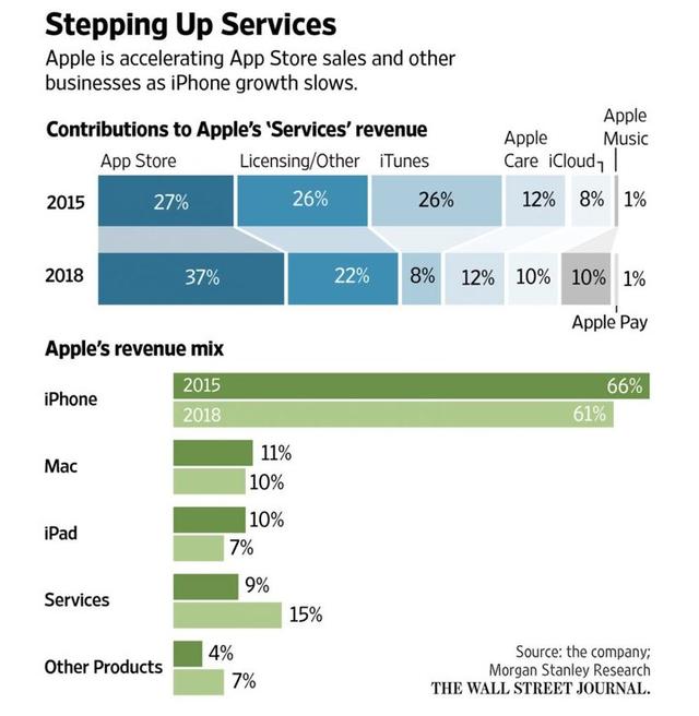 这表明苹果发展的重心正在从硬件转移到软件服务。