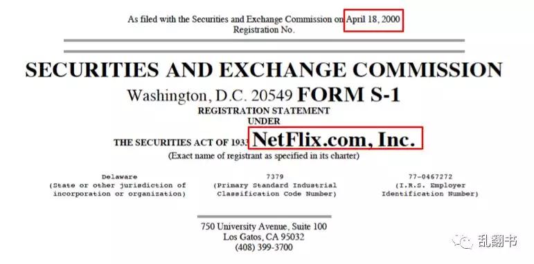 Netflix在2000年4月18首次提交了招股书,材料上还带着泡沫破灭前夕被狂热追捧的.com域名。
