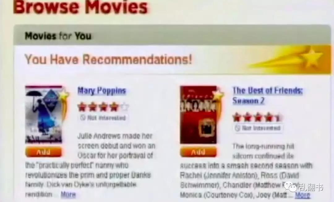 首先从内容推荐看,最初为了控制DVD内容的采购成本以及优化库存的分配,Netflix在网站中上线了最早的推荐功能,对非热门影片,但是用户可能感兴趣的老电影进行推荐。
