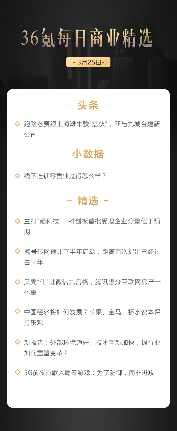 本文来自36氪付费栏目《36氪每日商业精选》——3月25日
