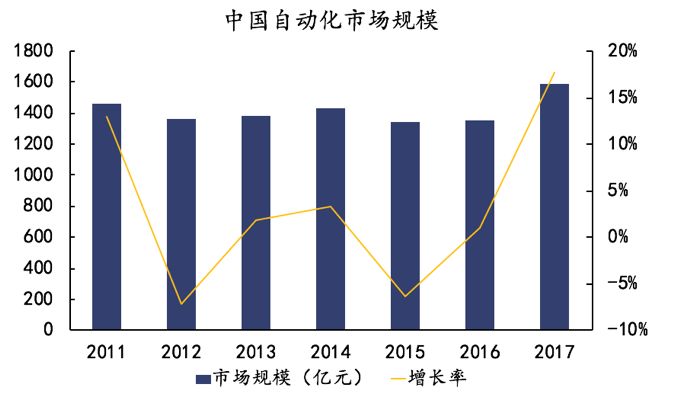首先,根据《2016年中国自动化市场白皮书》,2015年中国的自动化及工业控制市场规模为1390亿元,预计2017年将达到1593亿元,CAGR仅为7%。我们可以看到中国的自动化进程已经进入到平缓增长的阶段。这意味着,在现有技术的支持下,工业自动化已经发展到一个平台期,很多精细化的、非标准化的操作或野外工作场景下,自动化机器难以胜任,人力仍然是工业生产中不可或缺的生产力来源。