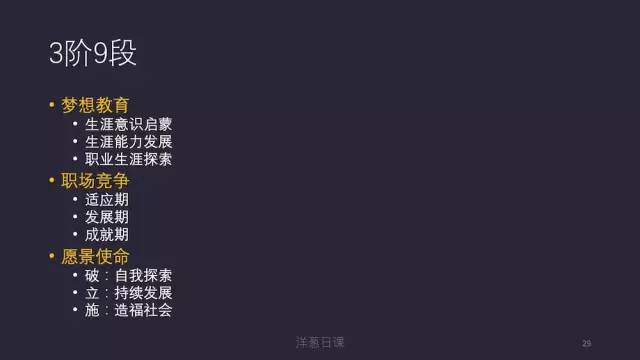 国内知名的职业生涯规划师赵昂在他的《洞见》这本书中,把职业生涯划分为3个大阶段,9小阶段。