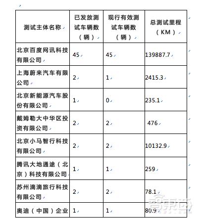 根据北京市区交通委发布的报告,目前一共有8家企业在北京地区进行自动驾驶测试,包括百度、蔚来、北汽新能源、小马智行(Pony.ai)、戴姆勒、腾讯、滴滴、奥迪。