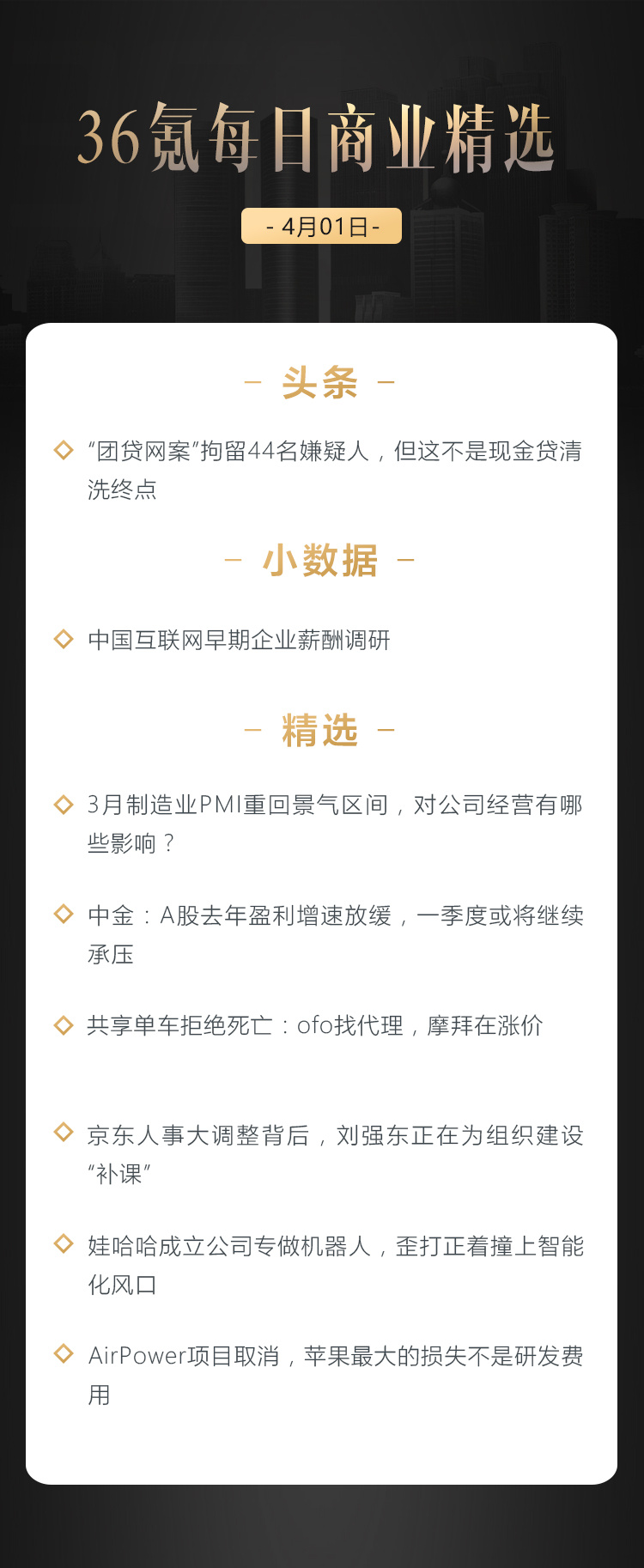 本文来自36氪付费栏目《36氪每日商业精选》——4月1日