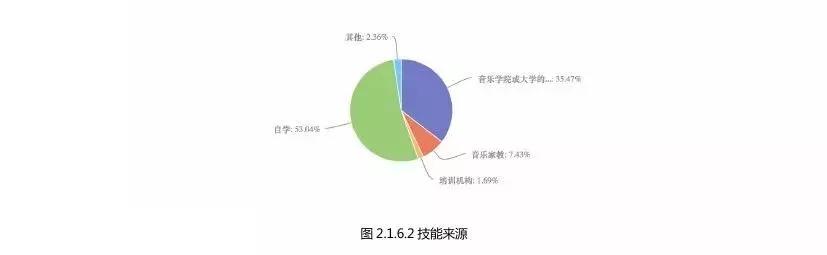 《认知状况调查》揭示了一个现象,在受访音乐人中,46.24%的音乐人为非音乐科班出身。逾五成音乐人的技能来自于自学,而只有三成音乐人的音乐技能来自于音乐院校。