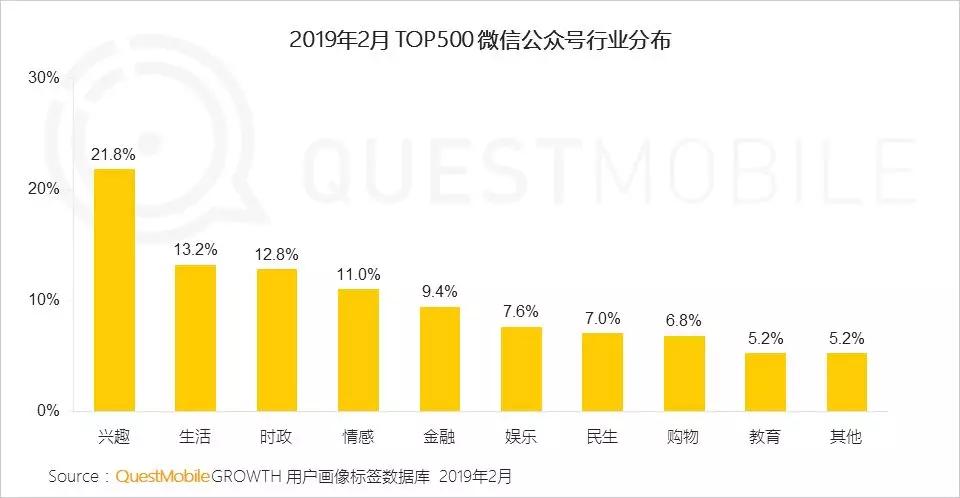 2、兴趣类公众号内容细分领域众多,文化、影视、汽车、读书等公众号尤受欢迎