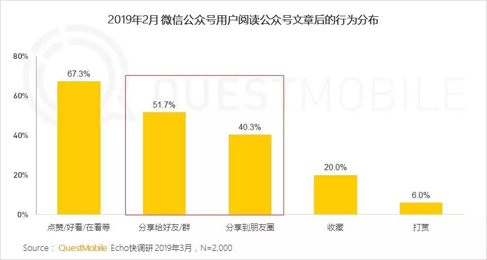 6、微信为优质内容提供了极佳的传播场所,一半以上用户有过分享公众号文章的行为