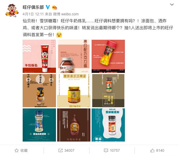 截止发稿前,这条微博的转发已经超过3万,评论数超过1万,创下旺仔俱乐部的转赞新高。上一次有万级转发还是在旺旺宣布推出洗面奶的时候。因为这次的调料衍生有众多热门产品,包括旺仔牛奶的直接衍生品牛奶炼乳、旺旺仙贝衍生食品仙贝粉、浪味仙衍生调料蔬菜粉等,在旺旺官微的微博下,被顶得最高的评论是:“仙贝粉!!!我的妈我小时候的梦想就是只舔仙贝粉不吃仙贝”。