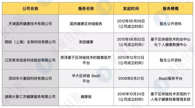 除了华大基因外,以下几家企业也想做区块链+健康医疗的尝试:
