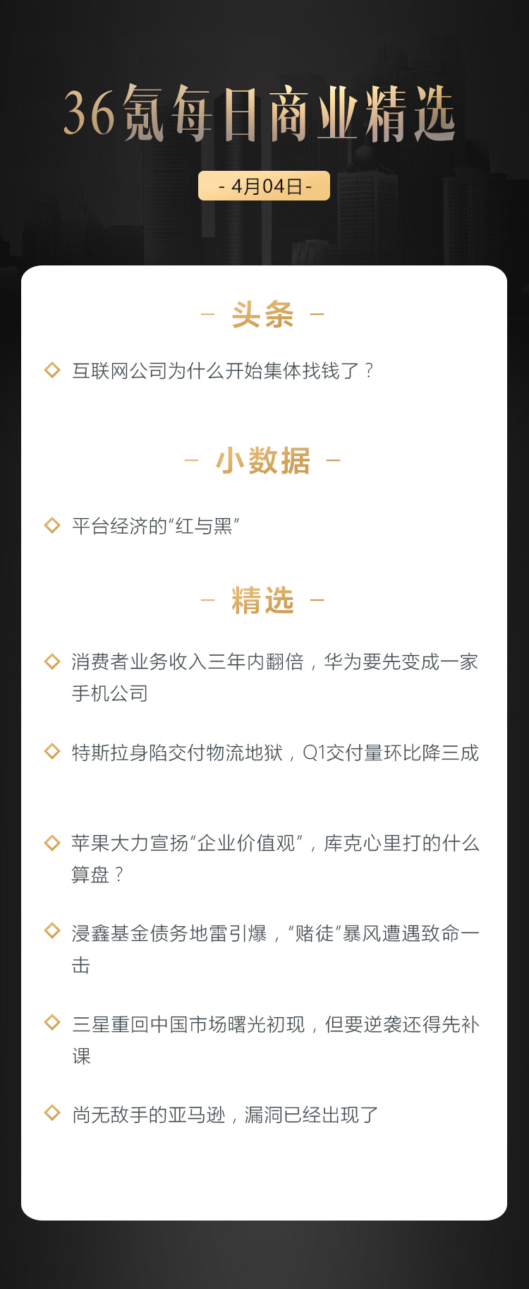 本文来自36氪付费栏目《36氪每日商业精选》——4月4日