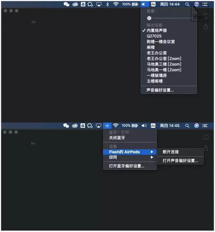 ▲ 正品 AirPods 可以轻松切换至同一 iCloud 账户下的 Mac,并且能显示电量