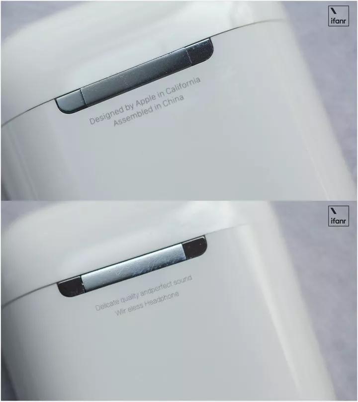 当然,需要说明的是,以上这些包装和外观方面的差异,并不能作为辨别真假 AirPods 的唯一依据。毕竟,不排除后续伴随山寨生产商的改进,山寨 AirPods 也能在这些方面仿制得与正品一致。