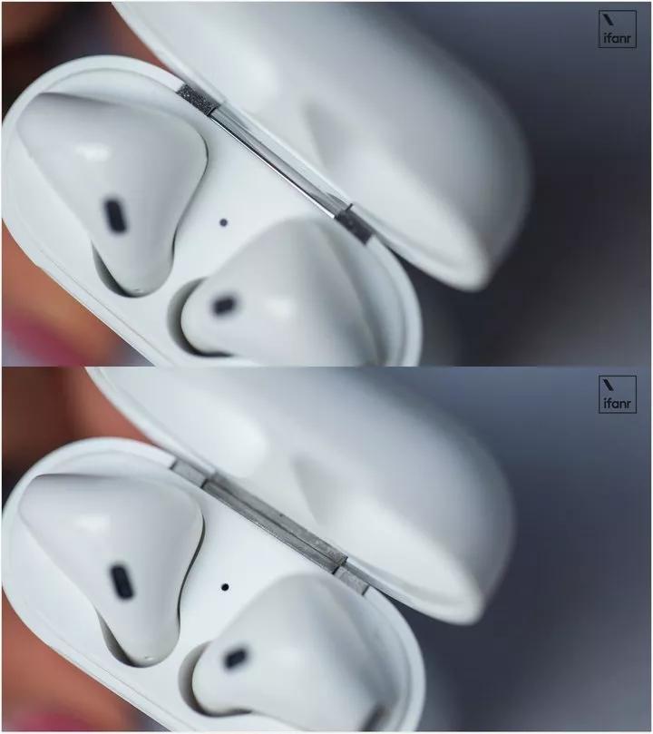 ▲ 上为正品 AirPods,下为山寨 AirPods