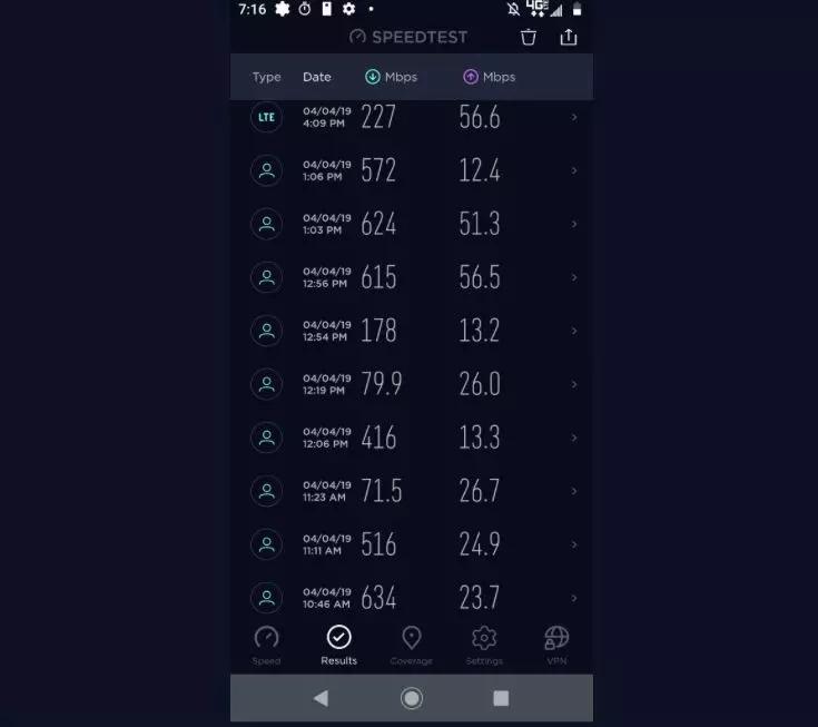 在有5G信号的地方,数据速度比4G LTE网络快得多,平均在400Mbps~600Mbps,几乎是iPhone XS Max手机的十倍。但上传速度比预计的慢,速度在20到30Mbps。
