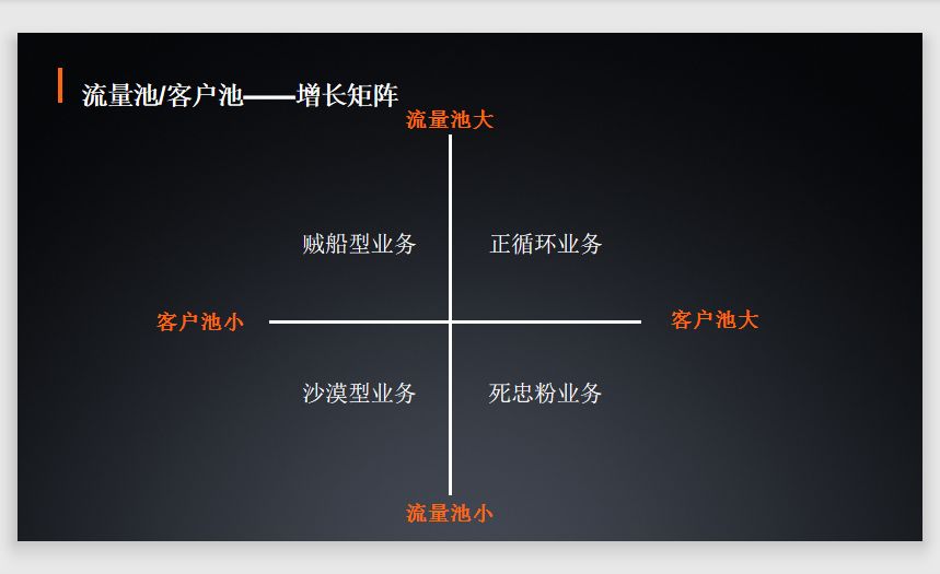 流量池小、客户池大,叫死忠粉型的业务。流量很少,但是每一个进来的客户都持续交易。
