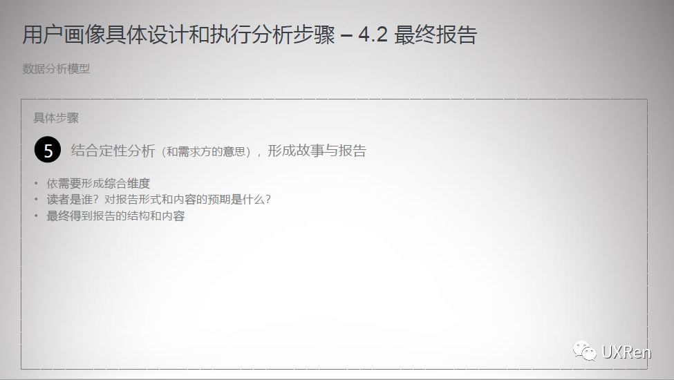 需要形成综合维度(多个小维度的题目可能需要综合整理成为一个综合维度,比如问了很多消费行为、内容的问题,最后可能需要根据业务需求归类到价格敏感度这个综合维度上)、要注意报告的读者是谁,对报告形式和内容的预期是什么?最终得到报告的结构和内容。