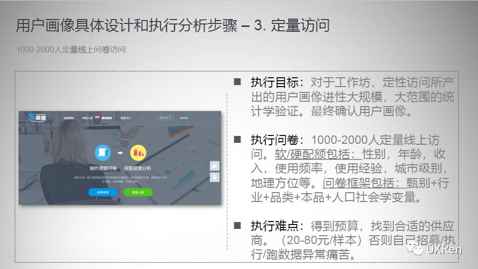 1000-2000人样本量,运用大样本线上问卷投放,以定量的形式最终验证在内部工作坊和定性座谈会中产出的人群分类,最终确认用户画像。