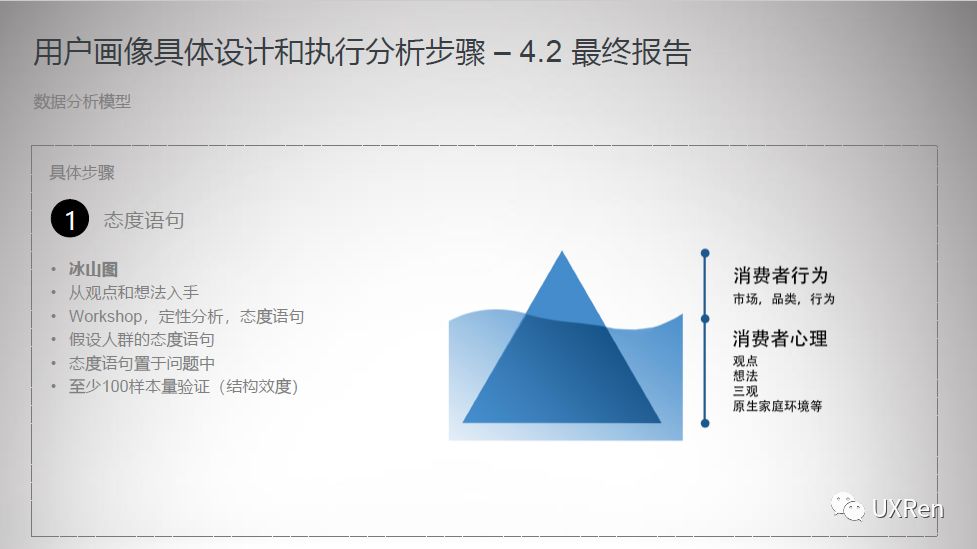 得到态度语句之后要做至少100样本量验证,验证问卷的结构效度,当问卷的结构效度可靠时才可以说通过态度语句对用户的分类是可靠的