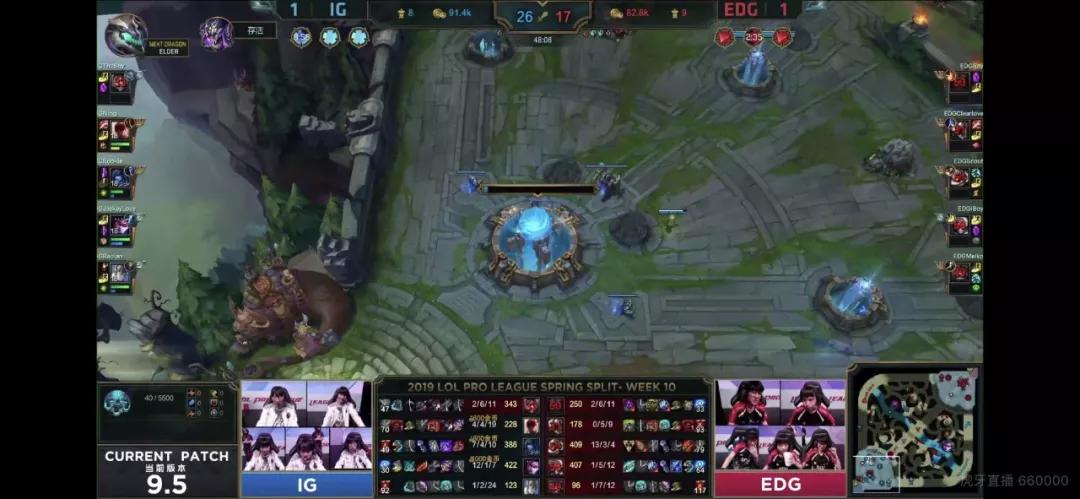 一连串充满戏剧性的事情在另一场比赛中发生了,TheShy单杀,TheShy滴血逃生,iG靠基地水晶20滴血绝地翻盘。不负众望,RNG和EDG为所有LPL观众奉献出了2019LPL春季赛常规赛里最精彩的一场比赛。