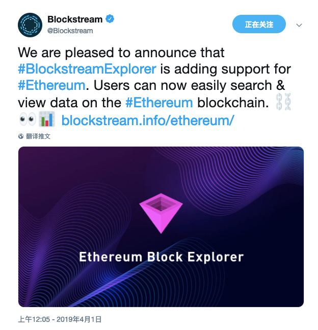 Blockstream区块浏览器表示正在增加对以太坊数据的支持,用户可搜索和查看以太坊区块链上的数据。[原文链接]