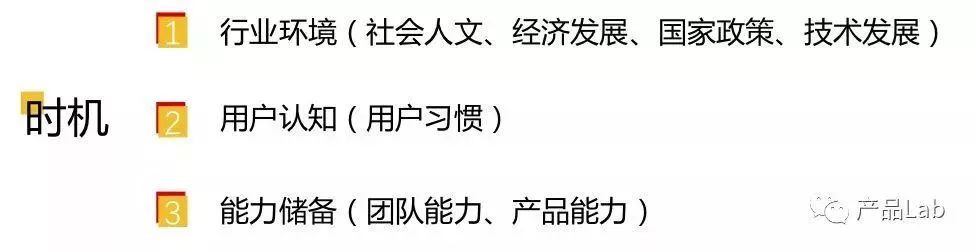 正所谓时势造英雄,一款产品的成功也讲究所谓的天时地利人和:天时是指行业环境,地利是指能力储备,人和则是指的用户认知,这些便构成产品的时机。
