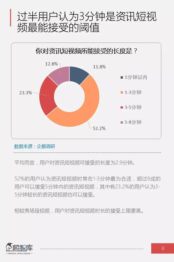 过半用户对资讯短视频可接受的时长阈值为3分钟