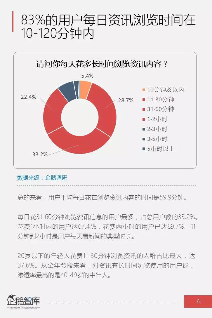 2019年,中国新闻资讯网民用户,每天人均浏览新闻资讯时长为59.9分钟。