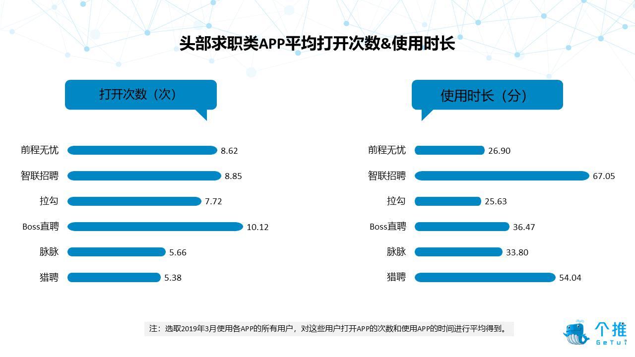 Boss直聘打开次数最高,智联招聘使用时间最长