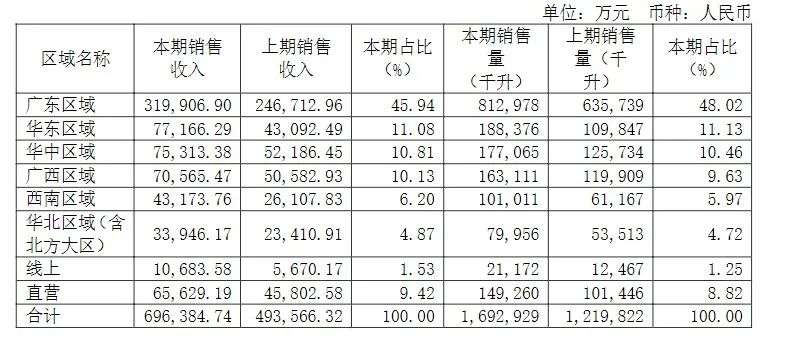 过于倚重广东地区的收入,让东鹏在IPO初期就已饱受诟病。