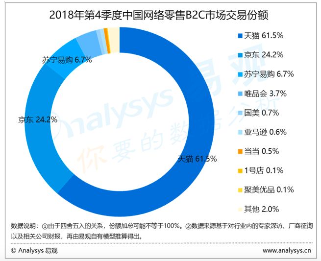 可以说,这份数据很形象的展示出了国内电商平台之间的份额占比。当然,2018年第四季度一份数据并不能全面的代表国美的现状,毕竟相对于其他电商平台对双11的活动力度,国美并没有全力应对,418和“黑五”是国美比较重视的两个时段。