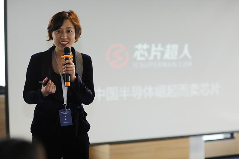 路演会现场,芯片超人是第一个路演项目,其创始人兼CEO姜蕾快人快语,江湖人称“花姐”,是近年来芯片流通领域的“风云人物”。
