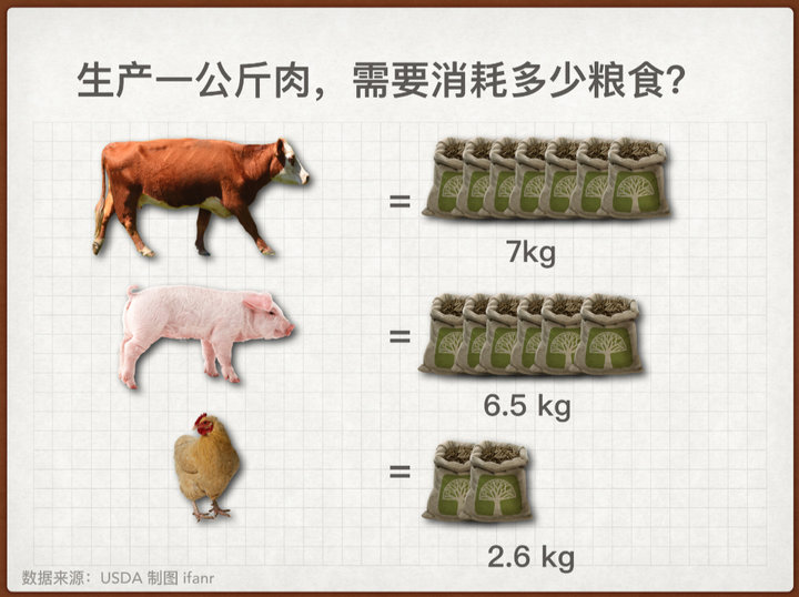 而平均来说,我们需要 1000kg 净水生产 1 kg 粮食,所以理论上,生产 1kg 牛肉需要消耗超过 7000kg 净水。