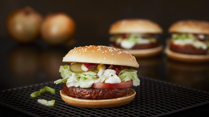 ▲ 麦当劳在芬兰推出的 McVegan,中间是大豆和蘑菇做成的「肉饼」