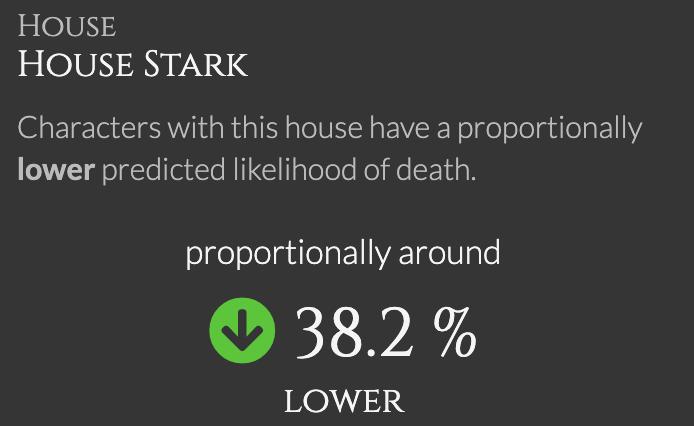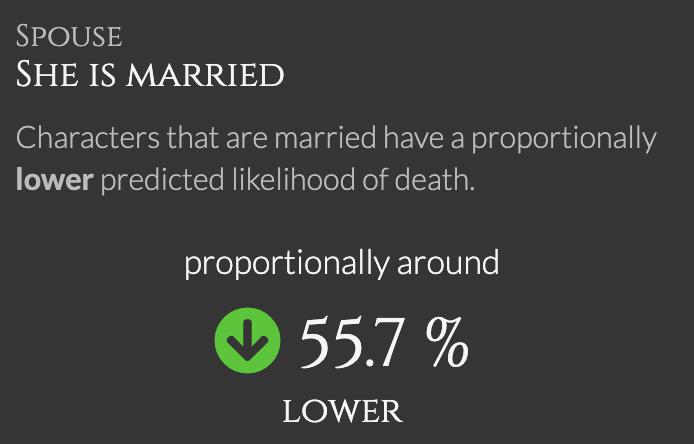 例如,男人死亡概率为60%,而呆在兰尼斯特家里可能会降低50%。综合考虑这两个因素之后,就可以建立一个生存函数。