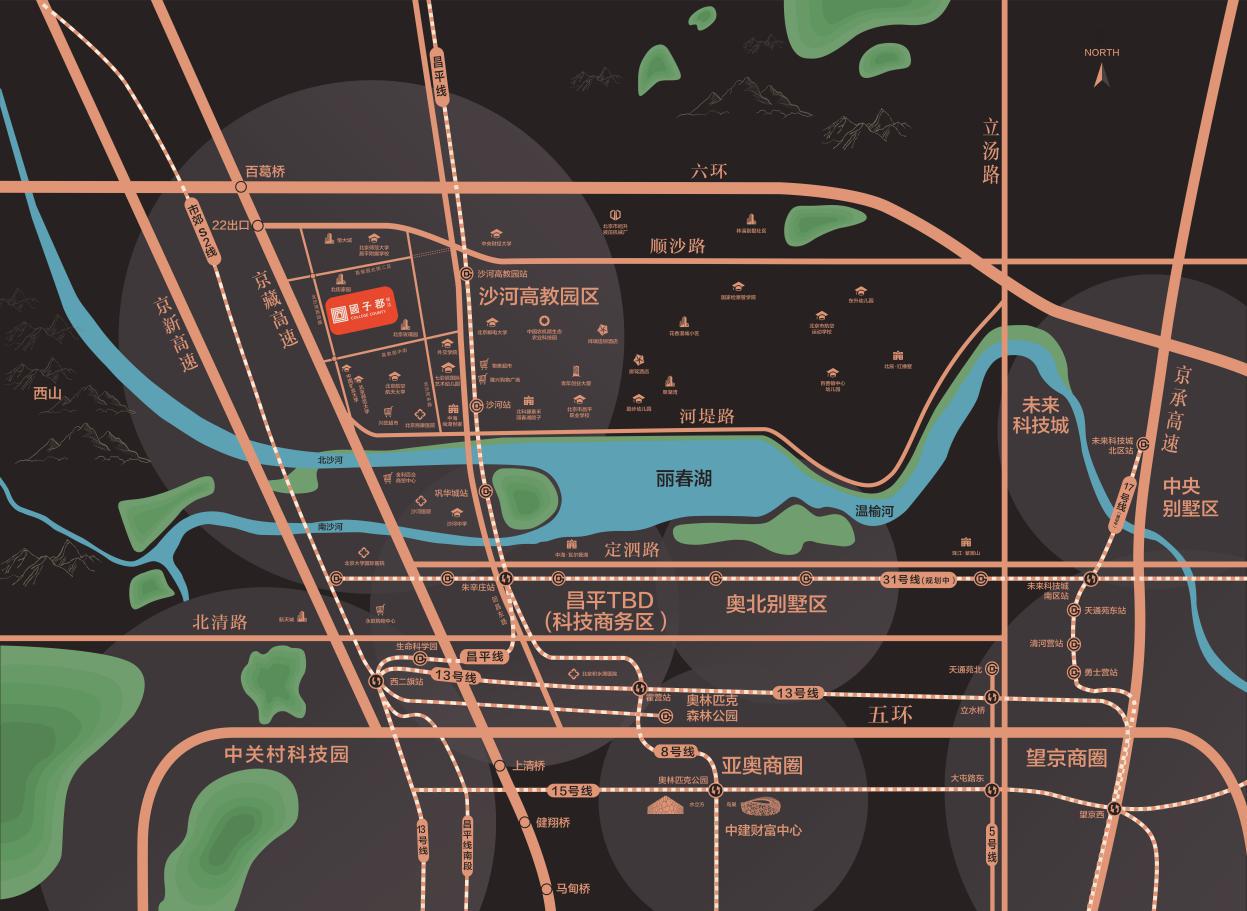 项目位于目前发展势头正强劲的昌平区沙河镇,作为颇具发展潜力的高教园区,周边书香浸润,以学为基,中央财经大学、北京邮电大学、北京航空航天大学、北京师范大学、外交学院、中国矿业大学名校林立;科技创新基地,高科技产业云集,景观资源非常丰富,另外,交通配套也比较完善,地块接驳京新、京藏高速,近地铁站为沙河站及沙河高教园站,交通方便;规划19号线二期距项目周边千余米。政策加磅,时代助推,市场热捧。沙河,正在以超时代的速度,成为昌平新星。而高教城版块更是沙河的领头羊。无论在实力、资源上,还是在未来区域发展上,都是周边塔尖人居不二之选。