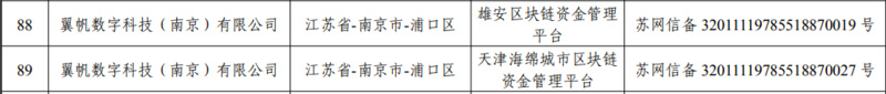 在网信办备案的第 88、89 号区块链项目