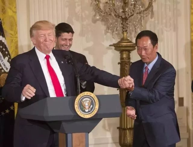 郭台铭跟特朗普的关系似乎也不错。他响应了后者在美国建厂创造工作岗位的呼应——2017年7月,富士康宣布投资100亿美元在威斯康星州建厂,由此带来的岗位多达130000个,工厂将主要生产LCD 显示屏。