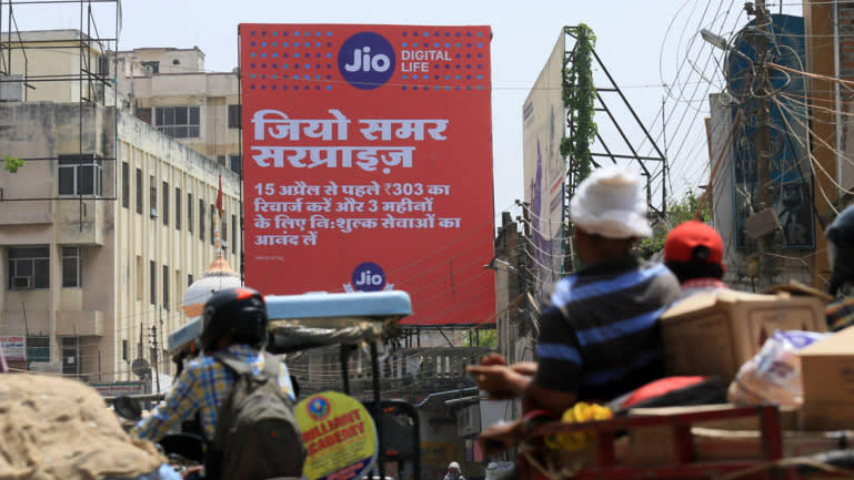 如果没有 Reliance Jio ——印度的廉价电信平台,Raveendran 的商业转型无从谈起。属于印度 Reliance Group (信实集团)的 Jio,至今已斥资近370亿美元用来降低智能手机和手机流量的价格,尽可能让所有印度人都用上智能手机和流量。