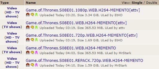 根据外媒 Torrentfreak 报道,就在《权游》最终季首映第二天上午,就有超过 12 万 BitTorrent 用户在网上分享首集的资源。在全球最大的盗版资源网站海盗湾上,最受欢迎的 5 个资源都是《权游》第八季首集。