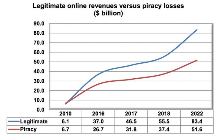 对于大力发展付费会员的视频网站来说,盗版下载量或播放量每增加一次,都可能意味着少了一个订阅用户。根据 Digital TV Research 的一份研究报告,Netflix、亚马逊、腾讯视频、优酷等全球范围内的流媒体因为盗版所造成的损失,将在 2022 年达到 516 亿美元。