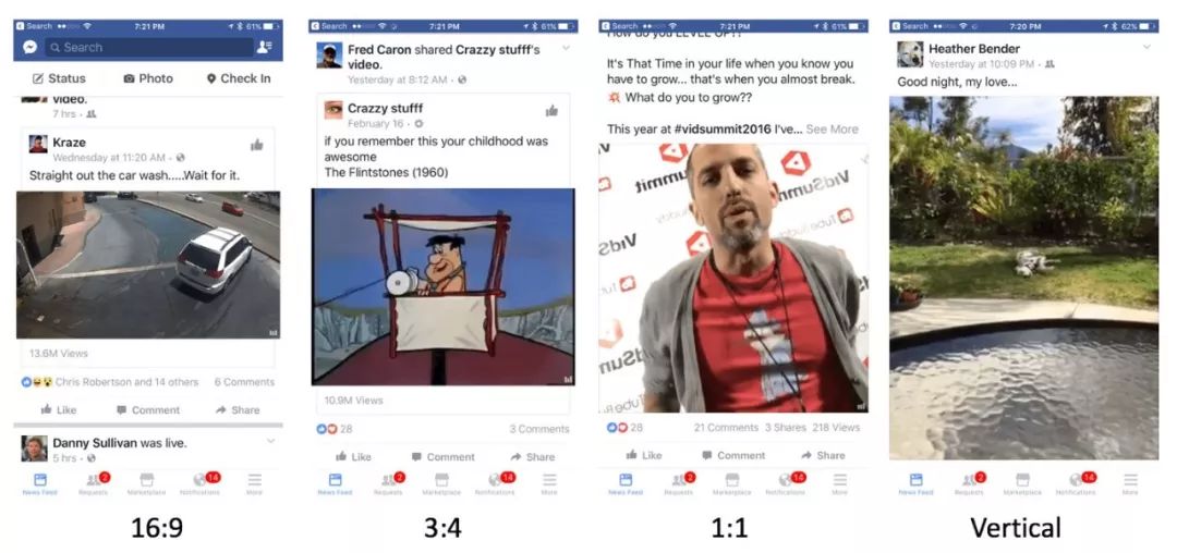 视频格式的演变,经历了以YouTube为代表的横屏时代,到以Instagram为代表的方形时代,再到以snapchat和抖音为代表的竖屏时代。较之于横屏视频,方形视频在移动端信息流中的屏幕占比多出78%,视频互动效果更好,效率更高,也更便于观看。